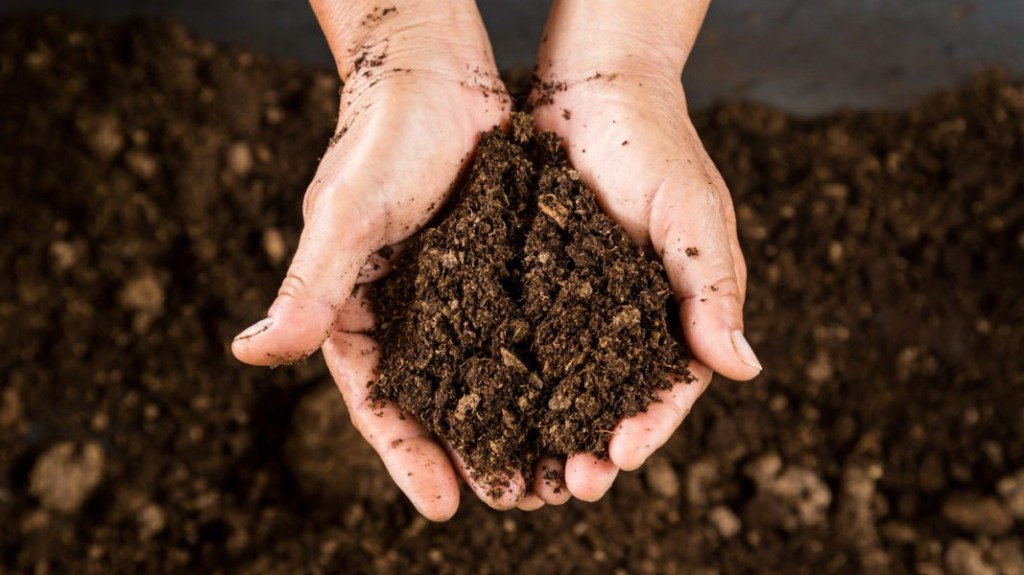 4. Adicionar, no máximo, uma mão cheia de terra ou composto pronto. Esta quantidade conterá microrganismos suficientes para iniciar o processo de compostagem;