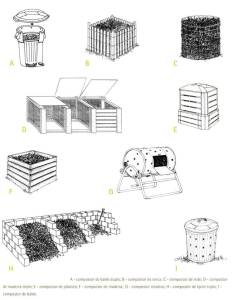 Existem vários tipos de compostor no mercado mas é bastante fácil fazer um em casa: um canto de terreno ou jardim, com uma cerca de rede, onde se possa colocar no interior os resíduos a compostar, é suficiente. Os compostores de madeira, com porta para facilitar a remoção do composto, também são muito populares e existem, ainda, os compostores de plástico, com maior variedade de formas e feitios, inclusive com a possibilidade de um tambor rotativo que permite o arejamento regular do composto.